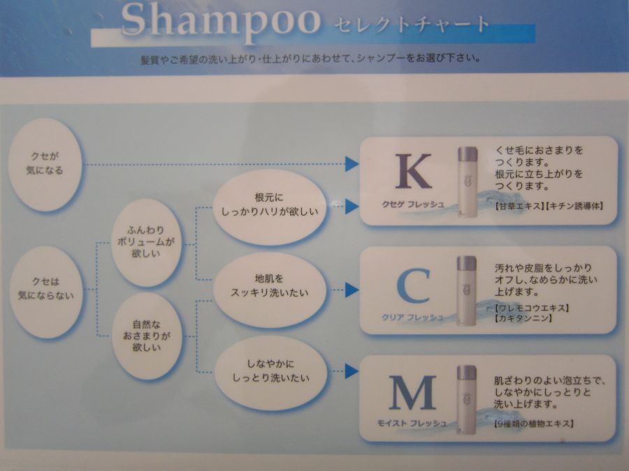 下記の写真を参考に、ご自分に合ったシャンプーを探してみてくださいねっ!